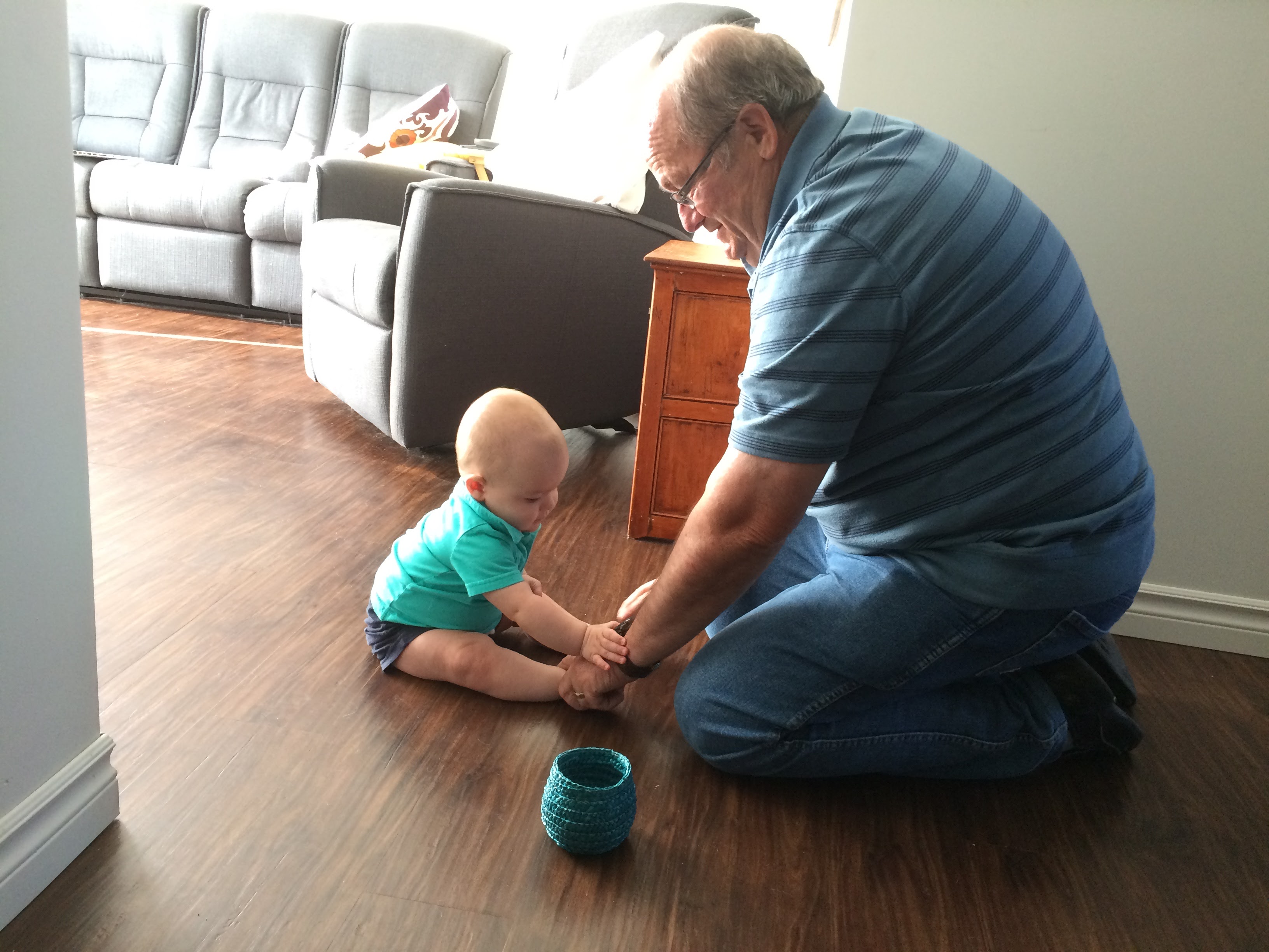 Cet automne, mon maire a aussi accepté mon invitation à venir prendre un café – quoiqu’il n’a pas pris de café, il n’en boit pas…- chez moi un samedi matin pour que je lui parle de mon projet de capsules vidéos sur le web pour ce blogue. Je voulais lui raconter mon idée, connaitre son avis et demander son appui. Il n’a pas hésité à me donner tout ça. Il n’a pas hésité non plus à se mettre 4 pattes par terre avec mon garçon alors âgé de 8 mois! Mon maire a l’âme d’un grand-père.