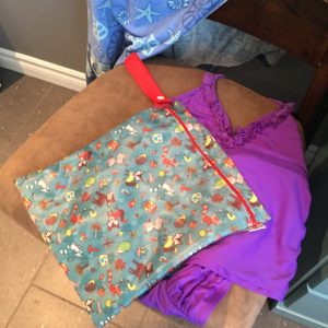 Ce produit est une découverte formidable ! Il est possible de se servir de ces sacs pour transporter les couches lavables souillées, des débarbouillettes humides et des maillots de bain ! Ma fille étant une nageuse enthousiaste, elle transporte pendant l’été son équipement partout où elle va et oublie souvent son maillot mouillé dans le fond d’un sac, enroulé dans sa serviette… Avec ce mignon sac imperméable, j’évite les dégâts et les odeurs! Je le mettrai dans son sac de piscine cet automne lorsque ces cours de natation reprendront !